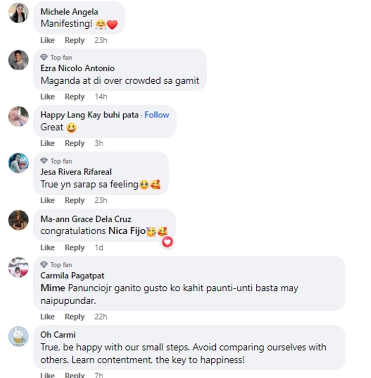 “Hindi po namin kaya ‘yung sobrang sosyal na bedroom at mamahaling mga furniture. Isa lang po gusto namin, ang magkaroon ng stress free and relax place in the most tiring day… Soon naman po the whole house na po, sa Awa at gabay ng Diyos,” Fijo said.