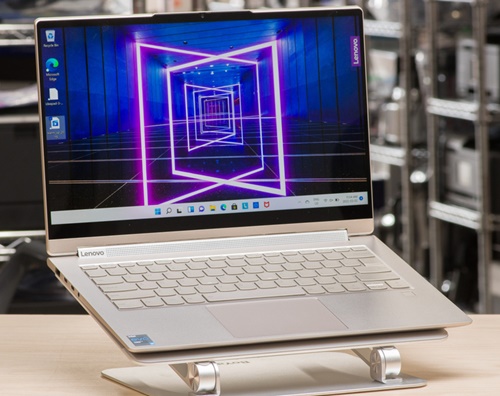 The Lenovo Yoga 9i 14 (2021) stands as a premium convertible laptop running on the Windows operating system. It is obtainable with either an Intel 11th Gen Core i5 or i7 processor, integrated graphics, and a maximum capacity of 16GB of RAM and 1TB of storage. The device offers users a choice between two display alternatives: an FHD (1920 x 1080) and a 4k (3840 x 2160) IPS display. Notably, it features an island-style keyboard, a glass touchpad, a 720p webcam, and Wi-Fi 6 connectivity. Connectivity options encompass one USB-A, two USB-C/Thunderbolt 4s, and a 3.5mm headphone jack.