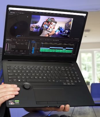 The ProArt Studiobook 16 OLED excels as a workstation, delivering robust performance with its Intel 11th CPUs and powerful NVIDIA discrete GPUs, making it suitable for demanding tasks like video editing and 3D graphics. The device features a 4k OLED display with full sRGB and DCI P3 coverage, along with a comfortable keyboard and an extensive port selection that includes Thunderbolt 4 and HDMI 2.1 ports. Additionally, the laptop incorporates a unique dial for convenient access to various settings and functions, such as adjusting brush size in Photoshop or navigating the timeline in Premiere Pro. While there is some thermal throttling observed on the CPU under heavy loads, the GPU remains unaffected. Notably, the device is serviceable, allowing users to easily replace memory, storage, and the battery.