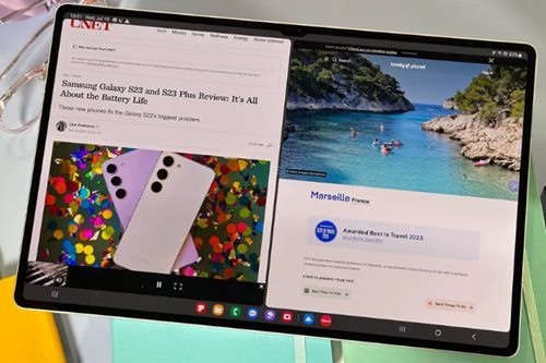 The tab is powered by a Qualcomm SM8550-AC Snapdragon 8 Gen 2 (4 nm) Octa-core processor coupled with an Adreno 740 graphics processing unit (GPU). It runs on the Android 13 + One UI 5.1 operating system. It comes in variants such as 128GB + 8GB RAM and 256GB + 12GB RAM.