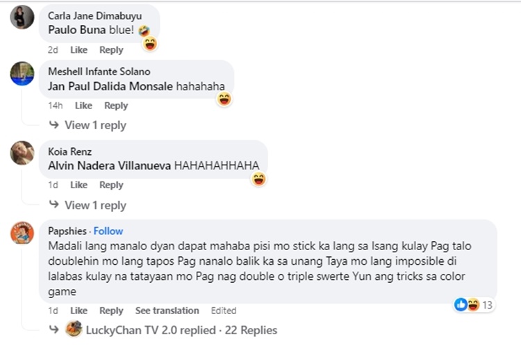 After a few rounds, the bettors were surprised when their money tripled after three blue colors came out. The guys screamed and cheered due to their unexpected victory. The group gave ‘Ate Blue’ P1,000 as ‘balato.’