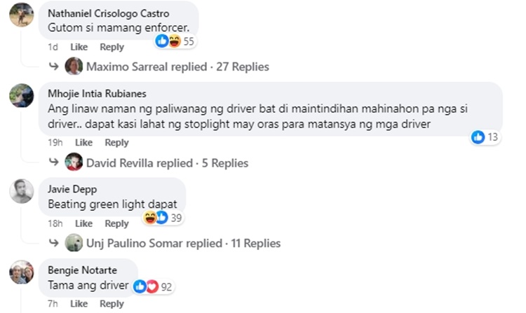 In the video, the traffic enforcer apprehended the vehicle driver for allegedly beating the red light. However, the motorist explained that he entered the intersection when the light was green but turned red while crossing.