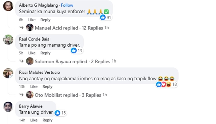 Recently, The Facebook page Bossaboss TV shared video footage of a vehicle driver and a traffic enforcer having a disagreement during an apprehension. The video elicits reactions from the netizens.