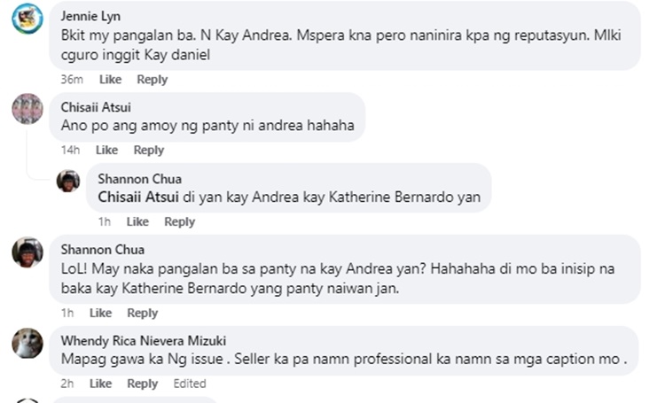 Reacting to Aldover’s post, netizen Miguel accused him of seeking attention and unnecessarily involving others in the situation. Another netizen, Christine, questioned Aldover’s claim, asking, how did he know that it was Andrea’s underwear?