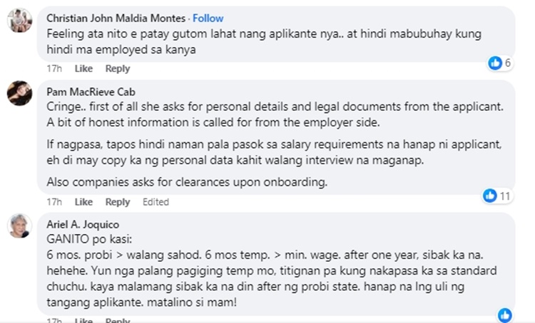 Recently, Daisy Borja, a Facebook user, posted a private conversation with the applicant asking about the salary instead of submitting the required documents. The post quickly circulated online and garnered various reactions from the netizens.