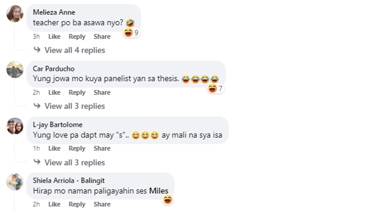 “Ayaw na ayaw at inis na inis sya tuwing nag sh-short text ako and ‘di nag cacapital and wrong punctuations kahit sa posts ko online. I ordered the jewelry online so limited lang yung characters na pwede ko ma-input sa message so napilitan akong magpaikli hahahaha. Tawa ako [nang] tawa! In fact sabay kaming tumatawa nung pinakita nya sakin yung note,” he added.