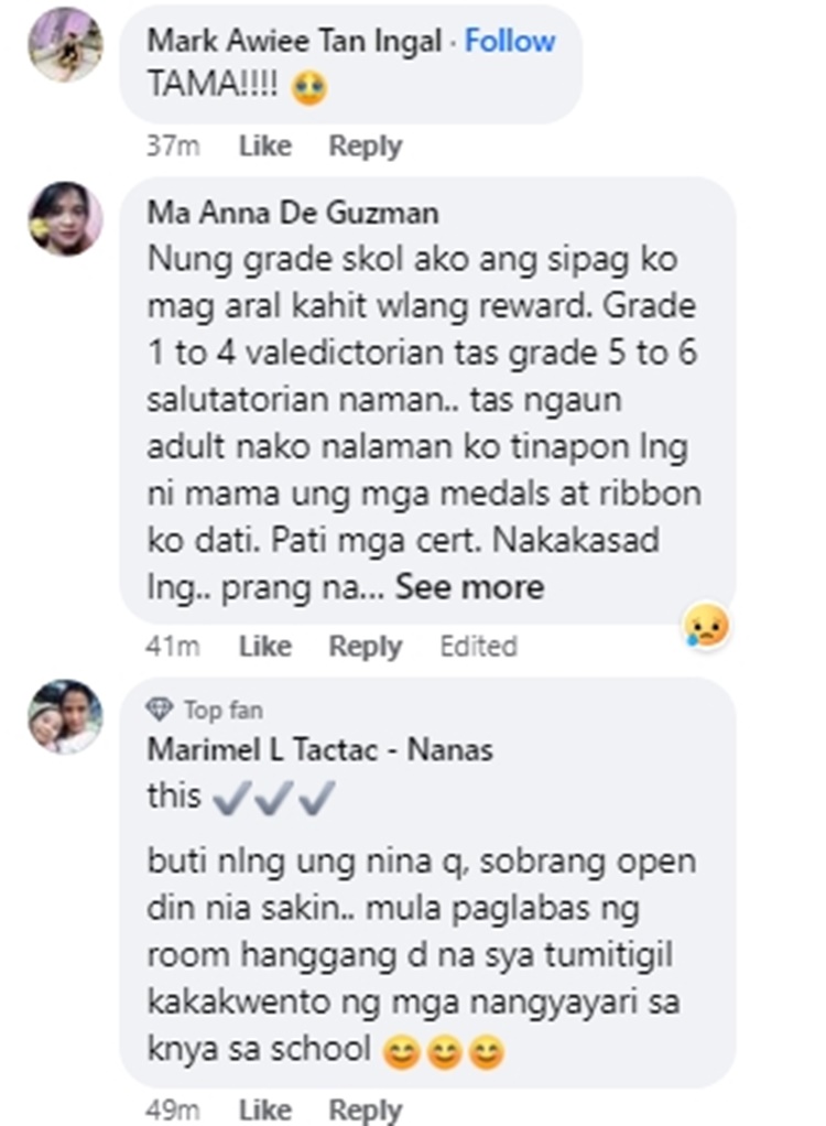 In another post, a proud dad flexes son’s high grades: “patuloy mo pa sipagan ang iyong pag aaral”