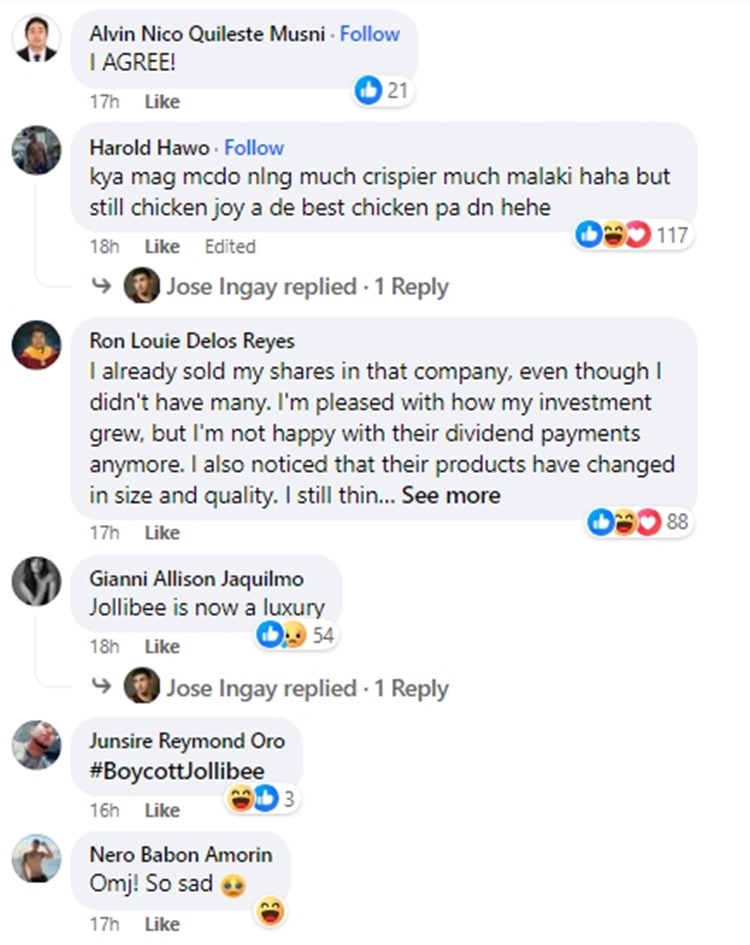 Jose Ingay, a Facebook user, shared photos of the shrinking size of Jollibee’s famous fried chicken. The post immediately spread like wildfire on social media and garnered various reactions from the online community.