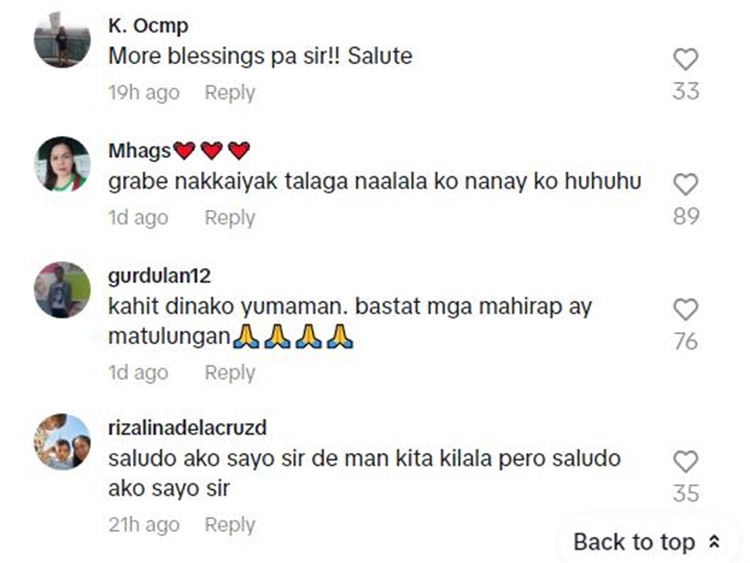 “Kung sinuman ang nagbigay nito malaking tulong po ito sa akin. Marami pong salamat,” naiiyak na sabi ni lola. Ngayon lang ako nakatanggap ng ganito karami. Kung sinuman ang tumulong nagpapasalamat po ako sa inyo. Isasali ko kayo sa panalangin ko kung sinuman kayo, lahat-lahat kayo. Lalo na ikaw, sir,” the grandma said.