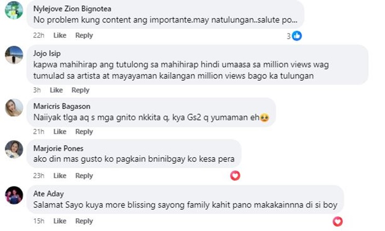 Kudos sayo bata, magpatuloy ka lang. Hindi habambuhay na andyan ka sa ganyang sitwasyon. Sana kahit sa konting naiabot kong ‘to, naibsan yong uhaw at gutom na meron ka sa oras na to.”