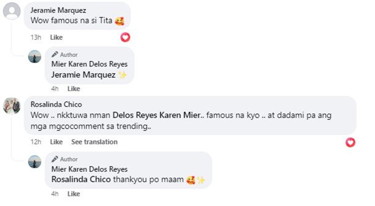 “Masaya po kasi hindi namin ine-expect na magte-trending. Sobrang happy po si mama kapag nababasa ‘yung mga comment lalo na sa TikTok, dami rin pong nagshe-share and heart react,” Karen said.