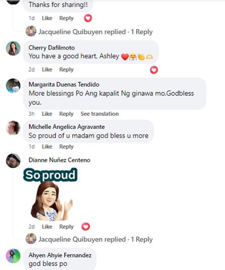 The construction worker said the price was almost equivalent to a day’s work for him. Quibuyen asked how much he earned, and he said P450. He then requested just one chicken. Moved by his sincerity, Jacqueline decided to give him two roast chickens.