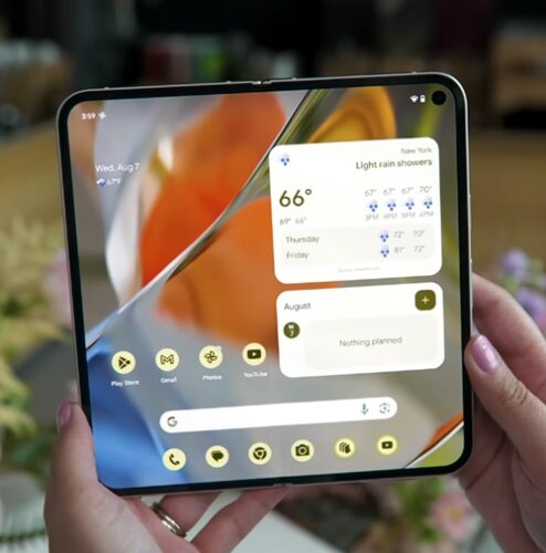 The dimension of the smartphone is unfolded: 155.2 x 150.2 x 5.1 mm and when it’s folded it measures 155.2 x 77.1 x 10.5 mm and weighs 257 grams. It comes with a screen size of 8 inches a Foldable LTPO OLED capacitive touchscreen display resolution of 2076 x 2152 pixels, and a 1:1 aspect ratio.