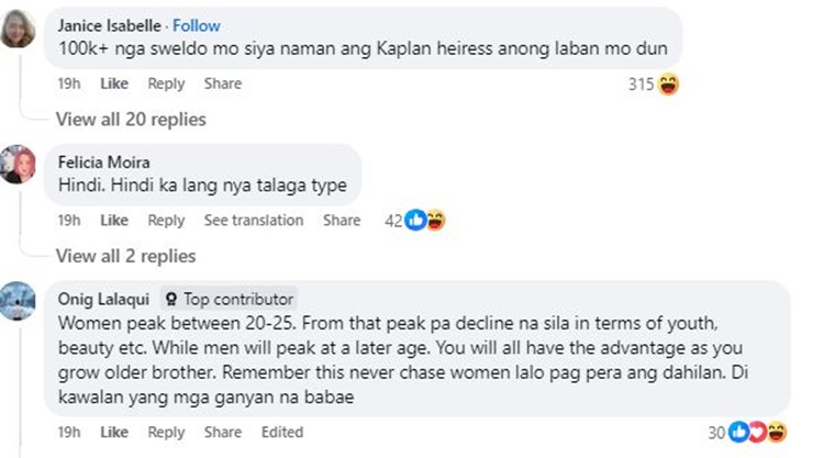 The man took the rejection well, smiling and wishing her the best. Secretly, though, he felt the urge to share that his own salary surpassed P100,000 per month. He decided to keep it to himself, finding humor in the situation.