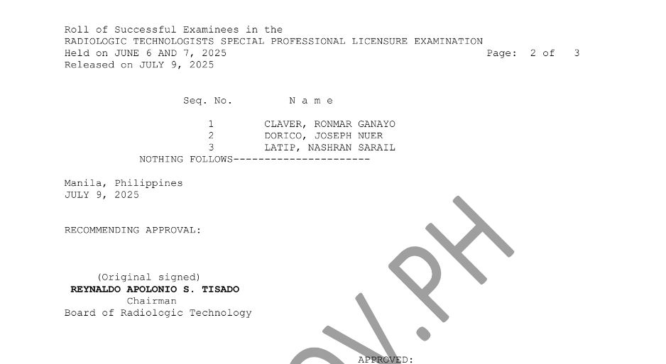 June 2025 SPLE RadTech Exam Results – PRC is expected to release the complete list of passers after the last day of exams.