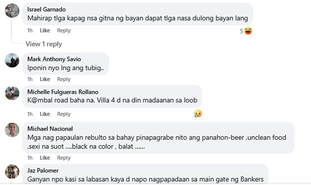 In Barangay Guitnang Bayan 1, floodwaters covered the main entrance of a subdivision, forcing residents to look for alternate routes. A nearby old electric post also appeared unstable, raising safety concerns.