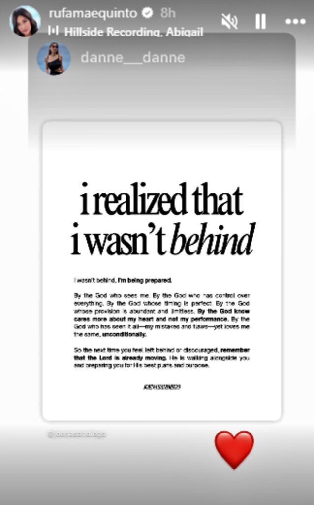 A few hours before posting her throwback photos with Trevor, Rufa Mae shared a post on her Instagram story. It was from a quote written by author Joena San Diego with the title “I realized that I wasn’t behind.”