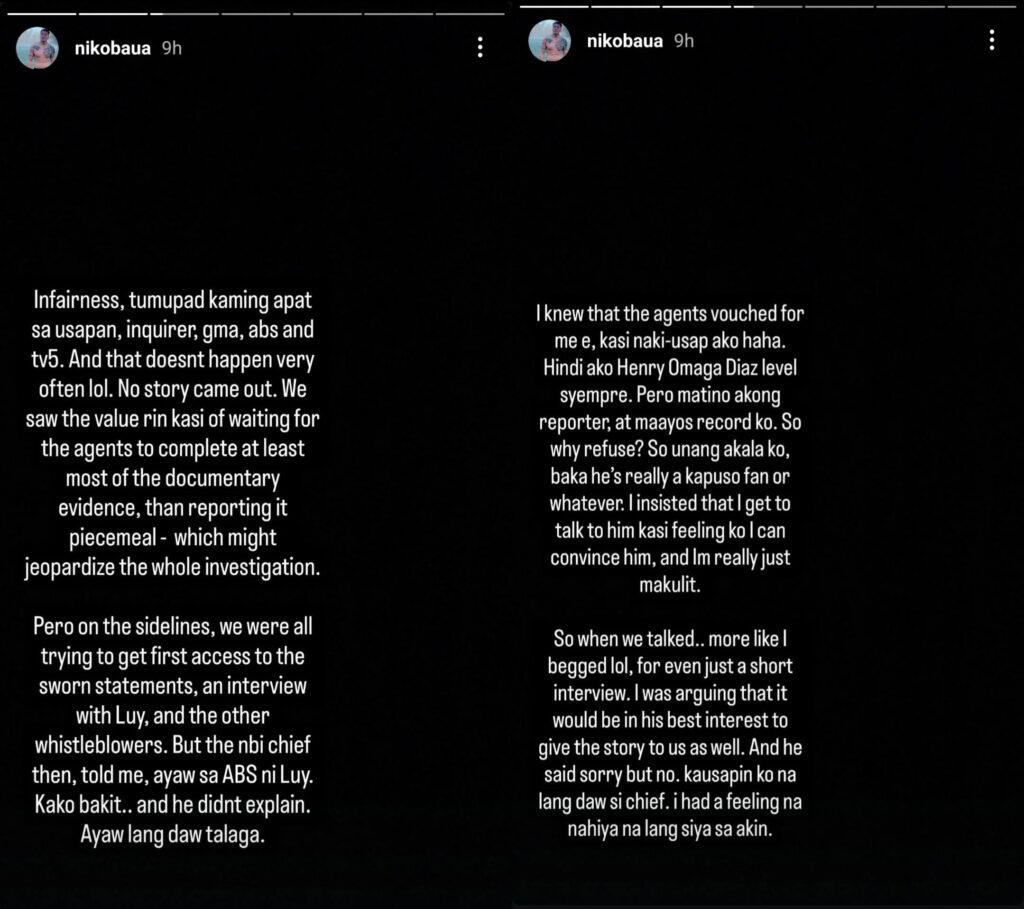 However, the NBI chief said that Luy did not want to have an interview with Niko because he is from ABS-CBN. “I knew that the agents vouched for me e, kasi naki-usap ako haha. Hindi ako Henry Omaga Diaz level syempre. Pero matino akong reporter, at maayos record ko,” Niko shared.