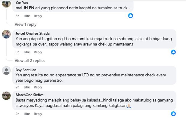 According to Magno Artitchea of the Mabitac Disaster Risk Reduction and Management Office, the dump truck reportedly lost its brakes before it went straight into the house. Rescuers quickly responded to the scene but could no longer save Jocelyn.