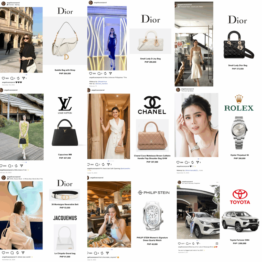 The Reddit post also included the luxury items that Angelica owns, like bags, watches, and an expensive car.