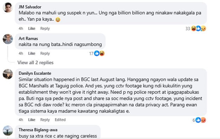 CCTV footage showed that the suspect took the bag in just a matter of seconds before calmly walking away. The stolen bag contained two mobile phones worth around P55,000, two wallets, ATM cards, IDs, and about P5,000 in cash.