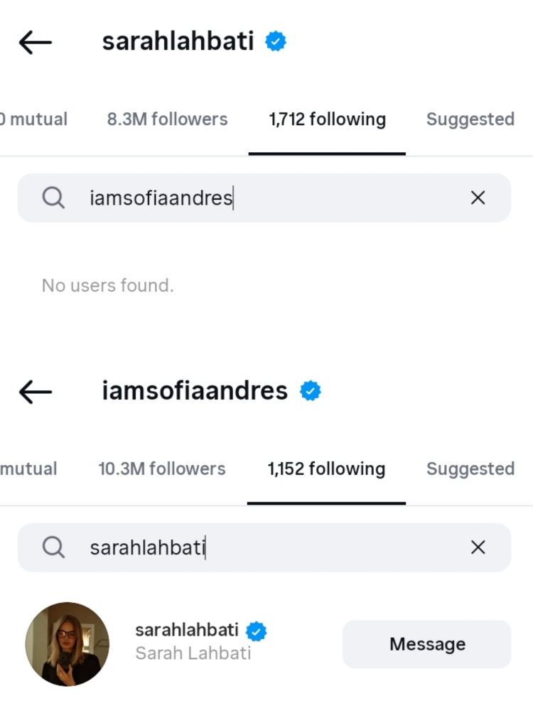 However, it can be seen that Sofia was still following Sarah on the photo-sharing social media platform.