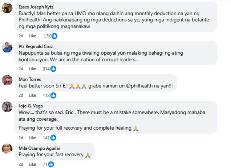 Many netizens shared similar frustrations about the country’s healthcare system. Some expressed disappointment that PhilHealth’s support often falls short, especially for patients seeking treatment in private hospitals where costs are higher.