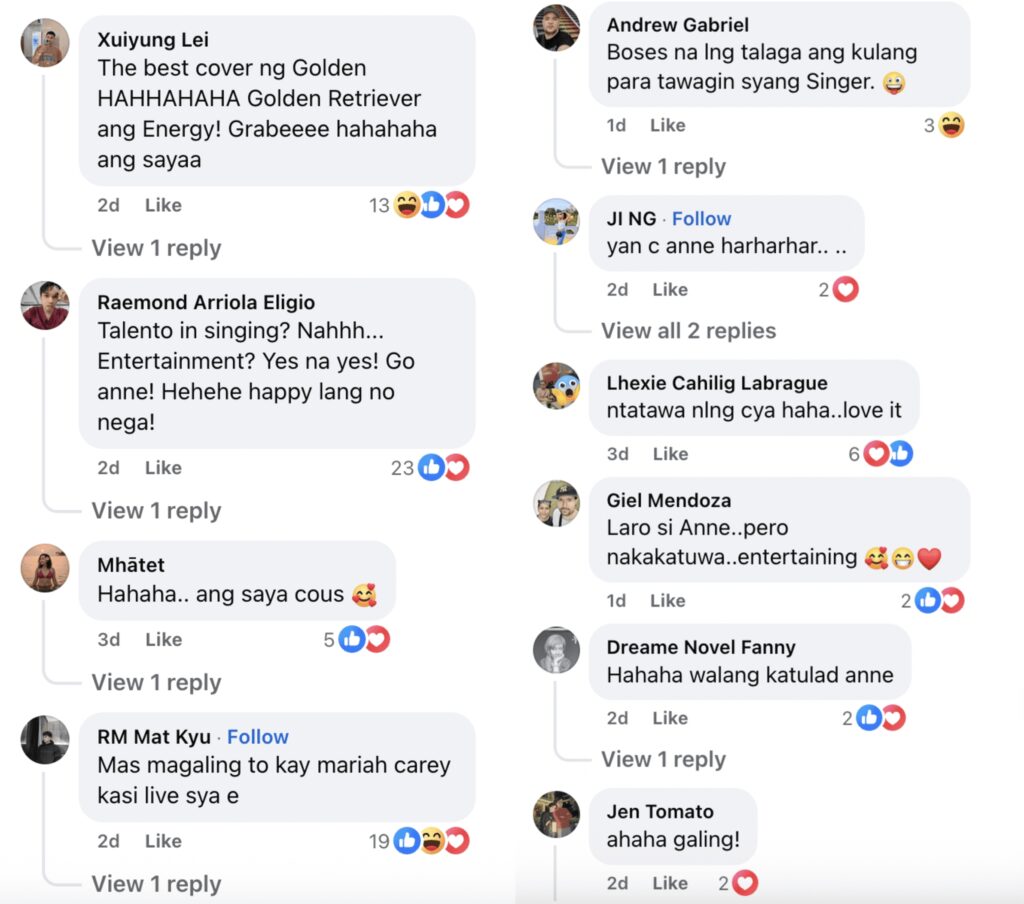 In the comment section of a post on Facebook featuring Anne’s performance, based on the article in Inquirer, she did not receive bashing. Netizens commented on this with amusement. Here are some comments.