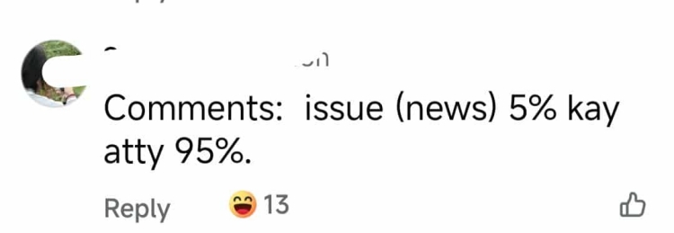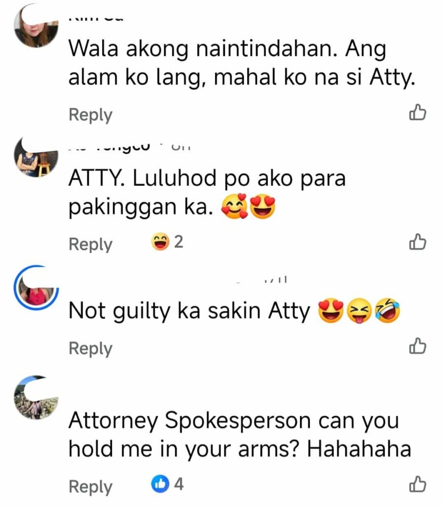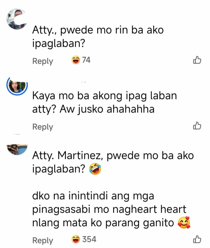 Another netizen took notice of two different kinds of comments on Atty Martinez. The netizen said that 5 percent of the comments were about the news, but the remaining majority commented about the lawyer.