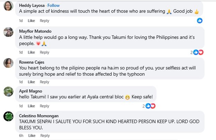 Recently, Takumi Senpai, a Facebook content creator based in the Philippines, shared that he decided to help after witnessing the devastating effects of the storm. The post garnered various reactions from the online community.