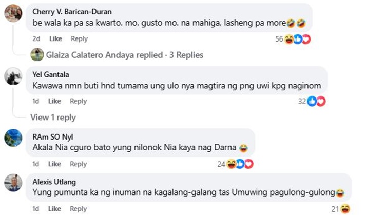 Many online users said that moments like these often happen when alcohol hits harder than expected. Others reminded that while having fun is normal, it is always best to know one’s limits to avoid embarrassing or potentially dangerous situations.