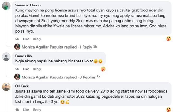 Monica shared that her husband has been delivering food by bike for five years. Rain or shine, he pedals through long distances just to earn enough for their daily needs. Before becoming a delivery rider, he worked as a janitor, but his salary was barely enough for their family’s expenses.