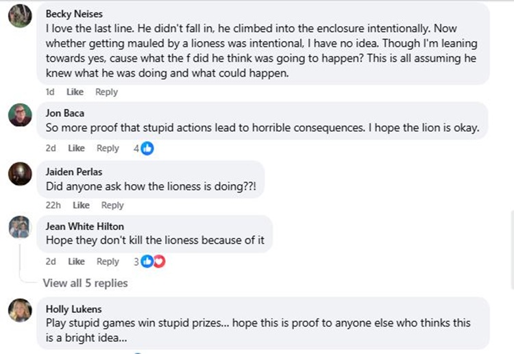 The management emphasized that the lioness simply reacted as any wild animal would when someone entered its territory.