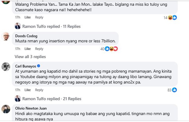 Ramon Tulfo defended his brother Raffy on Facebook regarding the issue of allegedly offering an indecent proposal to an actress. The post quickly went viral and drew various reactions online.
