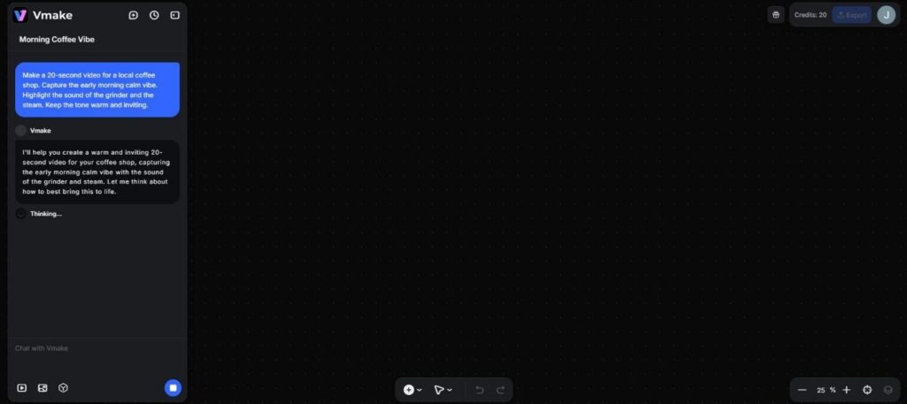 I decided to test the “Vmake Agent” with a very mundane scenario. I pretended I owned a small coffee shop. The “event” was simply the morning setup. This is something that happens every day. It is visually satisfying but boring to explain.