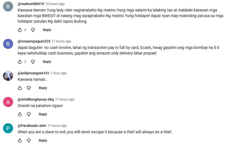 A female delivery rider expressed her frustration after being robbed of P13,000 by a riding-in-tandem in Digos City.