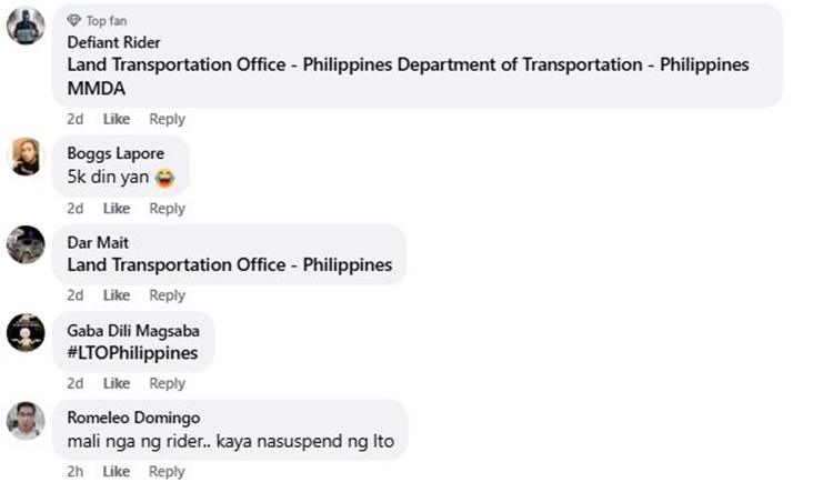 Rider’s License Suspend by LTO for 90 Days for Violating Traffic Policy