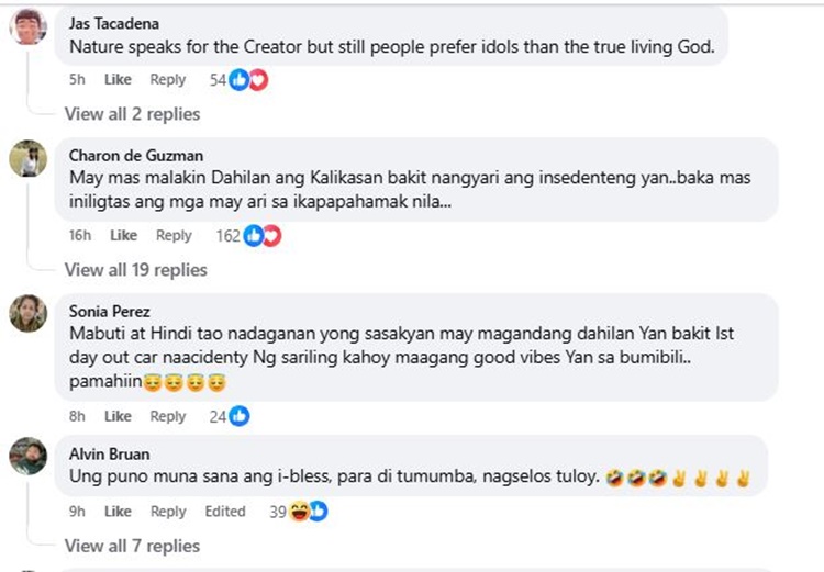 The incident happened while several vehicle owners were preparing for the blessing ceremony. Four vehicles were parked in the designated blessing area when the tree collapsed. A commuter van and a newly purchased SUV were heavily damaged after taking the direct impact.