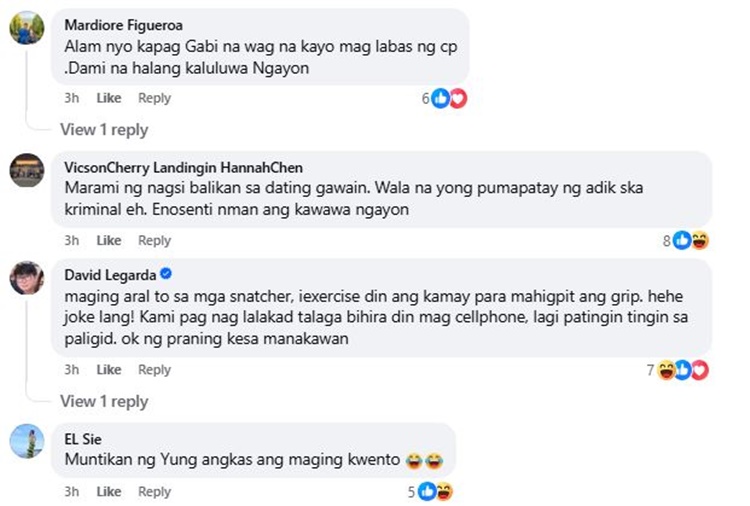 After the incident, they went to the barangay office to request a copy of the CCTV footage, which clearly showed the attempted snatching. Barangay officials reminded the public to stay alert, especially when using mobile phones at night or in dimly lit areas.