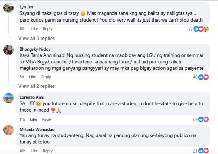A female nursing student earns praises online for helping an unconscious motorist lying along a street in Taguig City.