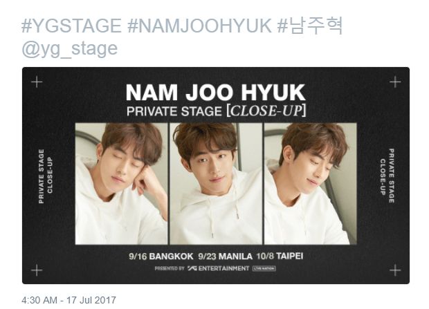 Nam Joo Hyuk will also visit Bangkok and Taipei but YG Entertainment has yet to release other details about Nam’s visit.
