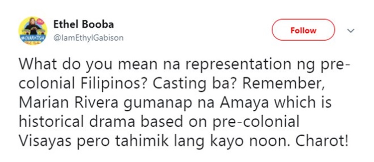 The 41-year-old entertainer showed her support for Soberano and even compared the similar casting choice involving the Kapuso actress Marian Rivera who played the role of Amaya in a drama based on the pre-colonial Visayas.