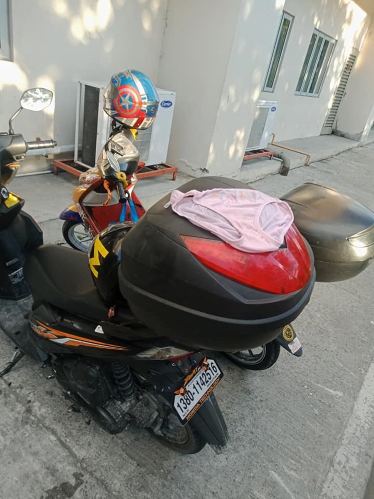 Recently, a Facebook user named Deletedd Accountt has shared the photos of a lady’s undergarment with ‘bulbol’ on his motorcycle’s topbox. The photos garnered various reactions from the online community.