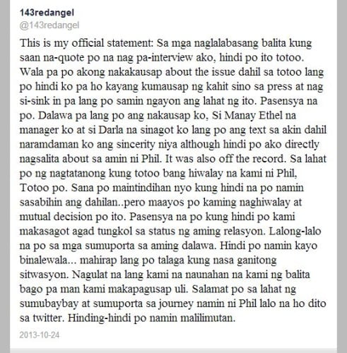 Kapamilya actress Angel Locsin confirmed to the media that she was indeed avoiding Luis Manzano although she stated that she is still in touch with the former boyfriend through text and on the phone. The 28-year-old Angel Locsin admitted during a interview with ABS-CBN on Tuesday that she avoided Luis Manzano as a sign of … Read more