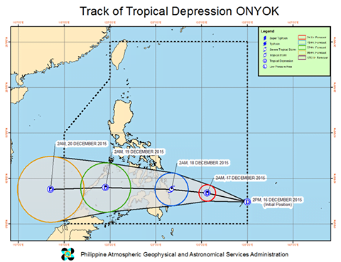 The country’s weather bureau, the Philippine Atmospheric, Geophysical and Astronomical Services Administration (PAGASA) announced on their December 19, 2015 weather bulletin that Bagyong Onyok weakens and now considered as a Low Pressure Area (LPA) after it made a landfall in Davao Oriental. PAGASA noted that Bagyong Onyok made a landfall in the vicinity of Manay, … Read more