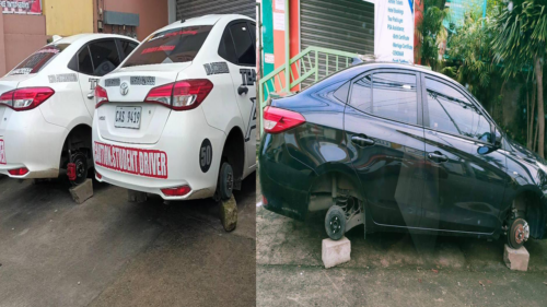 3 Driving School Cars Parked Outside Left with No Tires in Batangas City