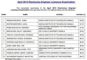 September 2014 Electronics Engineer (ECE) Top 10 Passers (Topnotchers)
