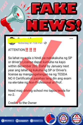 LTO Confirms Tesda NC-II as Requirement for Students Permit is Fake News