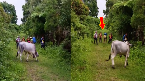 Group of Mountaineers Goes Viral After Passing the Cow Blocking Their Way