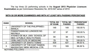 Physician Board Exam Results Top Performing Schools (August 2013)